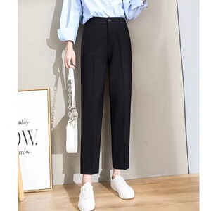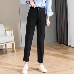 女性用スーツパンツ、夏用薄手ハイウエストストレートカジュアルパンツ、小柄な人向け、万能9点スリムシガレットパンツ