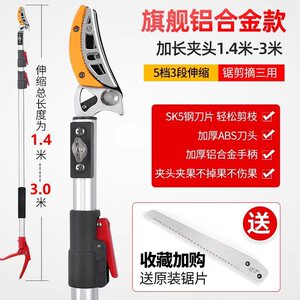 【グレードアップ伸縮モデル】3段1.4~3m(鋸・剪定・摘み取り)+果枝鋏