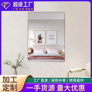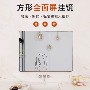 原木风家用镜子浴室镜实木圆角高清防爆梳妆镜洗手间镜子