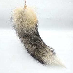 キツネのしっぽのキーホルダーの女性の包みのペンダントの自然な色の九尾の狐のしっぽの舞台は道具のしっぽのペンダントを演じます。