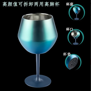 2-in-1 カクテルグラス、取り外し可能な U 字型赤ワイングラス、二重層断熱ゴブレット、304 ステンレス鋼の保冷コーヒーカップ