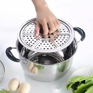 26CM 厚手スープポット [蓋+蒸し器付き]
