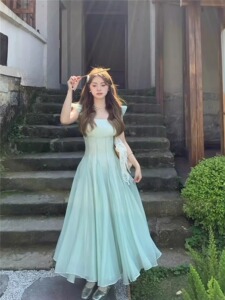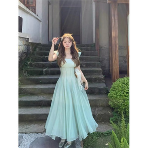 大きいサイズの太ったmmの気質は腰の方襟のワンピースの婦人服の夏の大きいスカートのフランスの気質の飛袖のスカートを収めます。