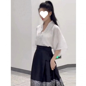 大きいサイズの新しい中国風の馬面スカートスーツ女性の夏の毎日の通勤改良された漢服 2025 新しいスタイル