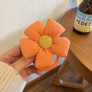 輪ゴムヘアゴム 立体コットンフラワー オレンジ