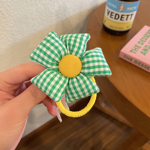 輪ゴムヘアゴム - チェック柄フラワーグリーン