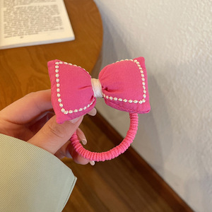 輪ゴムヘアゴム 立体リボン ローズレッド
