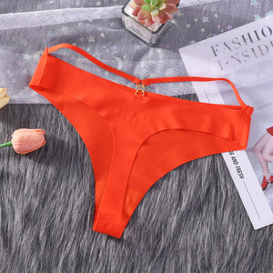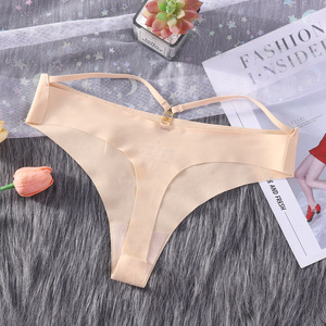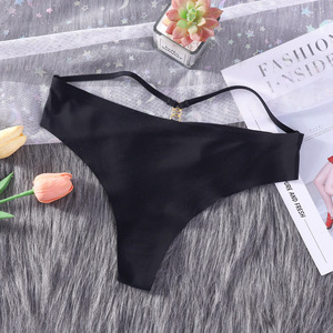 丁字裤跨境外贸细带女士中腰大码T裤冰丝无痕运动比基尼锦纶短裤