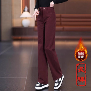 カーキデニムストレートパンツ女性用2025春夏秋新作小柄ハイウエストナローカジュアルワイドレッグパンツ