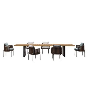 テーブル 1 脚、椅子 8 脚 (チーク材長テーブル 300) アルミニウム合金