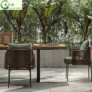 屋外のテーブルと椅子の庭のホテルの別荘の防水の日焼け止めのステンレスの藤の椅子の室外の藤は実木のテーブルと椅子の組み合わせを編みます。