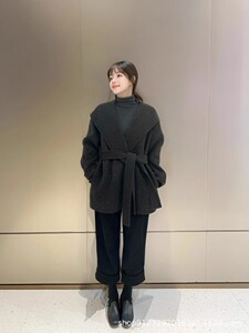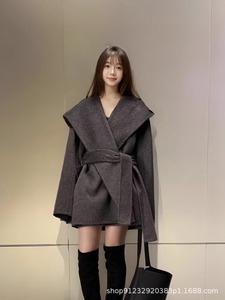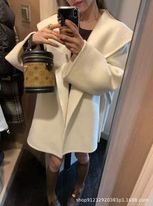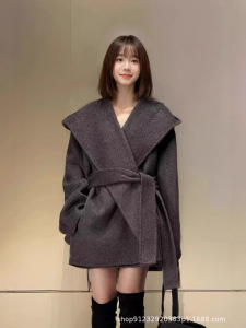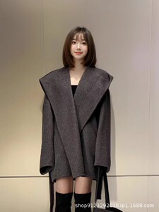女性用両面ウールコート韓国風冬ショートウールルーズフード付きウールコートマントファッション