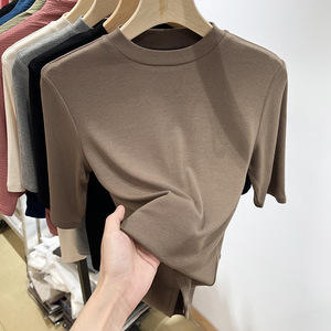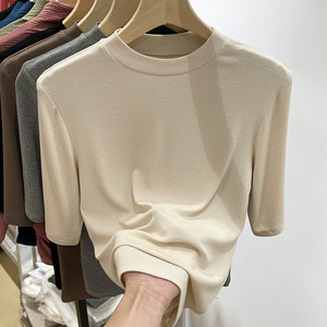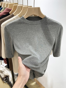欧货螺纹五分袖t恤女2025新款早秋修身中袖半高领打底小衫上衣薄