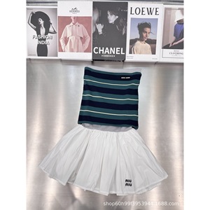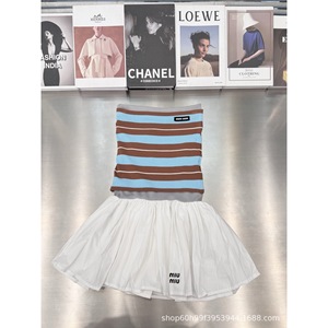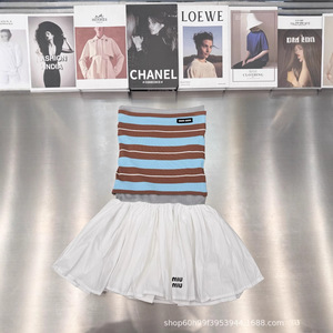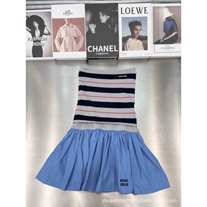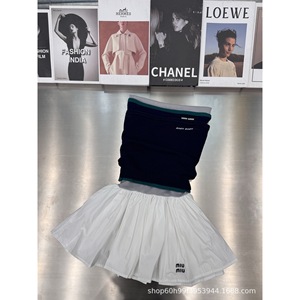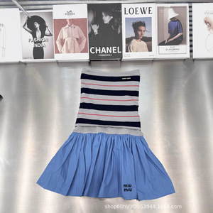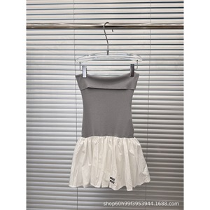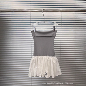 mm25夏季新款叠穿字母刺绣双层抹胸拼接撞色百褶连衣裙