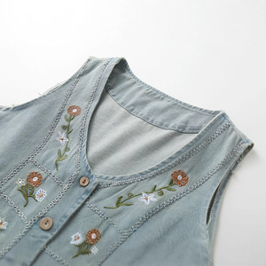 フォレストスタイルレトロ刺繍デニムベストショートジャケット女性の夏の年齢軽減ルーズレイヤードベストシックなベストトップ