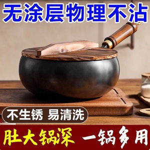 新しい古代スタイルのビッグベリーポット中華鍋 Zhangqiu ノンスティック鉄鍋小型中華鍋 24 センチメートル手鍛造未塗装槌目家庭用