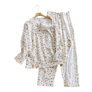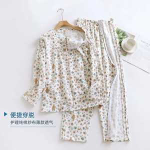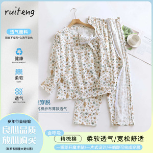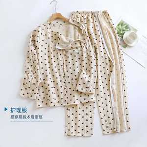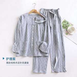 骨折、寝たきり、麻痺、高齢者、病院着、鍼灸、マッサージ後の術後用の女性用通気性ガーゼ純綿看護服
