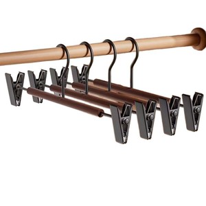 木製丸棒ズボンハンガー家庭用無痕木製ズボンスカート多機能クリップ付きハンガー収納洗濯クリップ