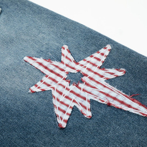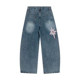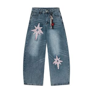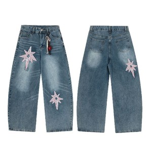 Qihong Yishe アメリカンレトロトレンディなニッチパターン刺繍パッチワイドレッグストレート夏の男性と女性のパーソナライズされたデニムパンツ