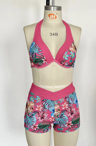 ヨーロッパとアメリカの貿易水着女性のセクシーなソリッドカラーのプリントスプリットハイウエストヒップカバーお腹カバーフラットレッグビーチ快適な水着