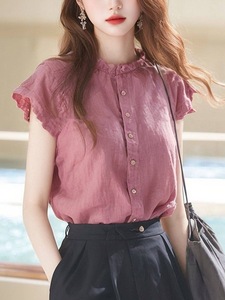 木の耳元にリネンの小さい袖のシャツの女性のデザイン感があります。