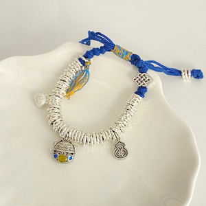 新しい中国風の古代スタイルの猫のブロークンシルバー編み込みブレスレット、パーソナライズされたデザインのカップルブレスレット、多用途の招き猫ブレスレット