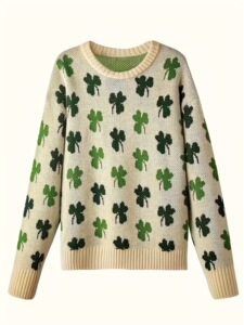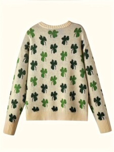 欧美跨境爆款三叶草提花图案休闲长袖落肩毛衣