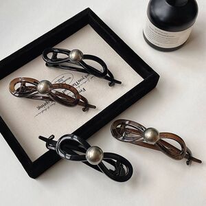 女性用リボン気質パールワンラインクリップ2025新しいハイエンドツイストヘアクリップ後頭部シャーククリップ