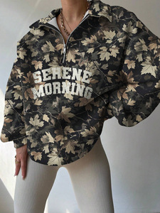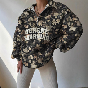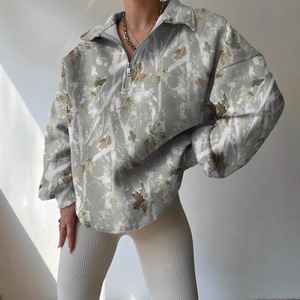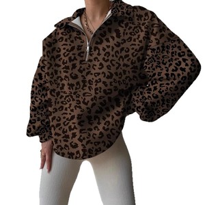 アメリカンストリートスタイルレディースカジュアル多用途トレンディファッションヒョウ柄高品質ハーフジップポロスウェットシャツ
