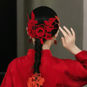 新しい中国風の花嫁のお祝い結婚式の頭飾り女性の古代スタイルの赤い切り紙漢服チャイナドレス義母ブライズメイドヘアアクセサリー