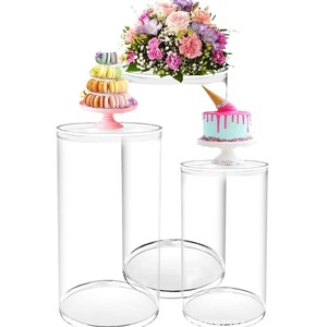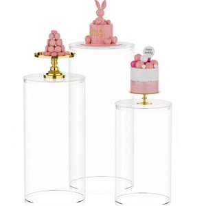 国境を越えた人気の透明アクリル円筒ベース円筒ディスプレイスタンド結婚式やお祝い用のPVCラウンドディスプレイコラム