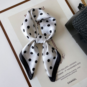 女性用シルクスカーフ、韓国風水玉模様春夏スカーフ、職場プロスカーフ、万能リボンスカーフ