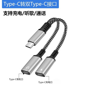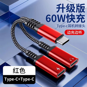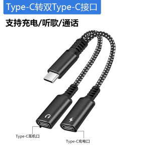 type-c二合一适用苹果快充耳机转接头听歌充电音频线