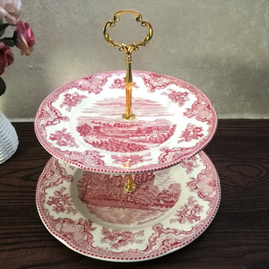 8+10inch 二重層フルーツプレート (金色の太い棒)