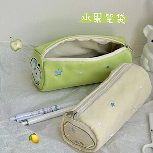 柔らかいフフフルーツ鉛筆バッグ学生高価値グリーンアップルレモン文具筆箱大容量スターメイクアップバッグ