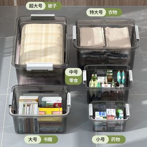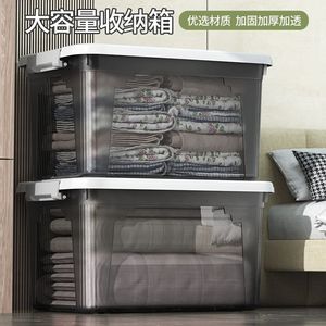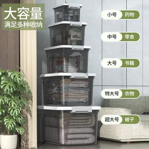 透明な収納ボックス、大容量の厚いプラスチック製の収納ボックス、蓋付きの厚い衣類収納ボックス、引っ越し用