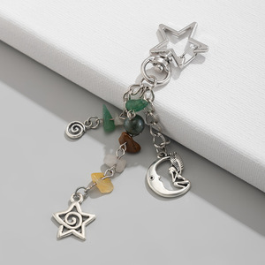 欧米のレトロな月の太陽のペンダントの不規則な砂利のキーホルダーはレトロな大衆の蝶の携帯電話のペンダントを飾ります。