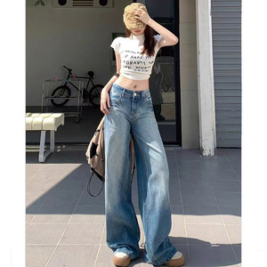 2025新款水洗复古阔腿牛仔裤女高腰显瘦垂感宽松百搭折痕直筒裤子