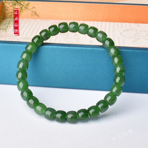 ホータンジャスパー ストレートカット オールドタイプビーズ 約7mm エメラルドグリーンビーズ エスニック風マッチング