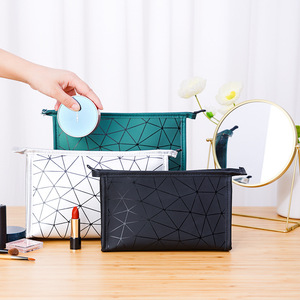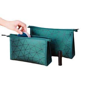 菱形 PU 化粧品バッグポータブル大容量防水トイレタリーバッグ多機能旅行化粧品口紅収納袋