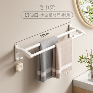 乳白-ダブルポール70cmタオルバー(穴あけ不要)
