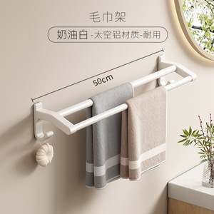 乳白-ダブルポール50cmタオルバー(穴あけ不要)