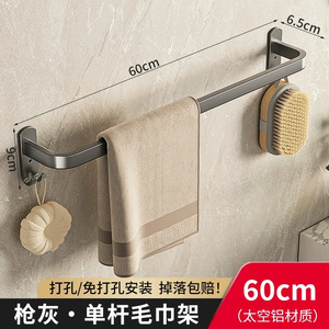 銃灰色の穴あけ不要のタオル掛け、浴室壁掛け式トイレタオルハンガー、防錆・防食