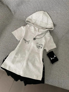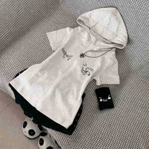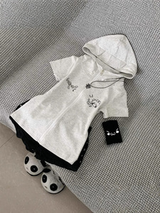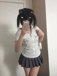 日本のレトロな猫耳フード付き半袖Tシャツレディース夏スリムカレッジスタイルスリムで多用途なトップジャケットトレンディ