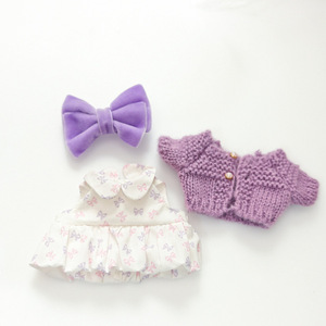 パープルリボンドレス2点セット+パープルウールカーディガン+パープル漫画カメラ