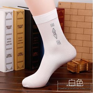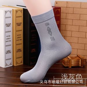 夏靴下メンズプリントブラックヒール夏メンズ薄手ミッドカーフソックスアイスシルク吸汗パールベルベットストッキングミッドカーフ