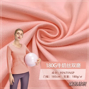 180 グラムミルクシルクダブル起毛ポリエステルストレッチ片面ジャージ平織りボトムシャツ両面起毛生地工場