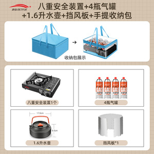 【1つのボックスにすべての収納が入ります】ブルーストーブ+ガスタンク4本+防風リング+ポータブルフル収納ボックス