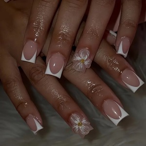 国境を越えて人気のある24枚の立体花白フランス式中角型ネイルメーカーの完成品卸売り