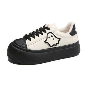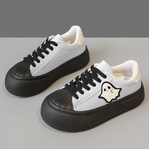 厚底パン白靴レディース万能ニッチビッグヘッドパン2024春新作カジュアルボードシューズイントレンド